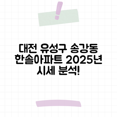 2025년 10월 대전시 유성구 송강동 한솔 아파트의 시세는 매매가와 전세가 모두 눈에 띄는 변화를 보여주고 있습니다. 이러한 변화를 반영한 다양한 투자 전략을 비교 분석하여, 최적의 선택을 할 수 있도록 도와드리겠습니다.