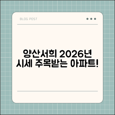 양산서희스타힐스 2026년 양산 시세 전망입니다.