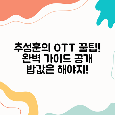 추성훈의 밥값은 해야지 OTT 완벽 가이드